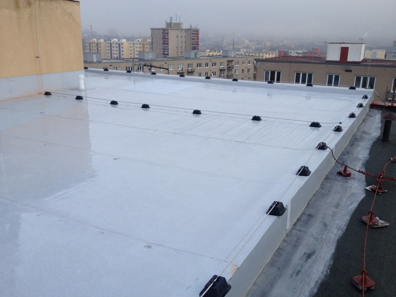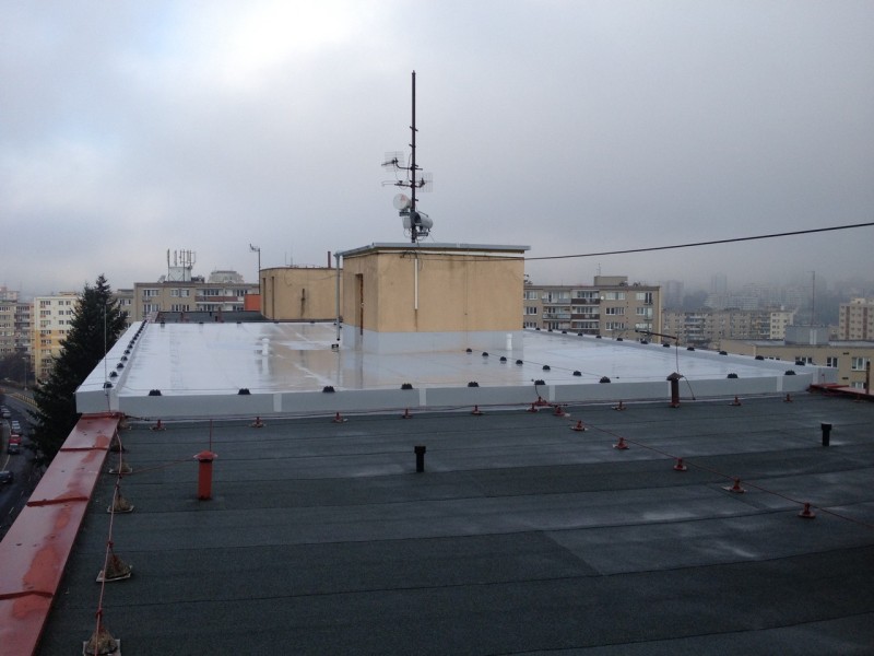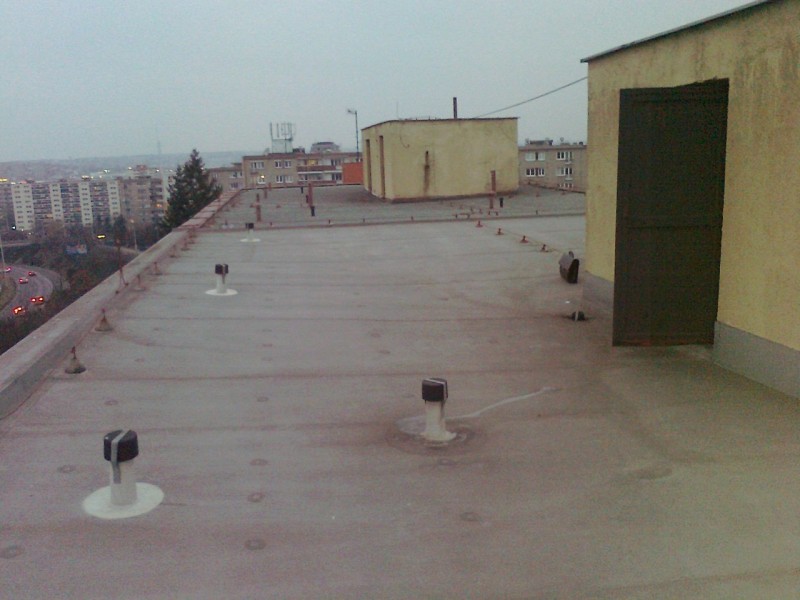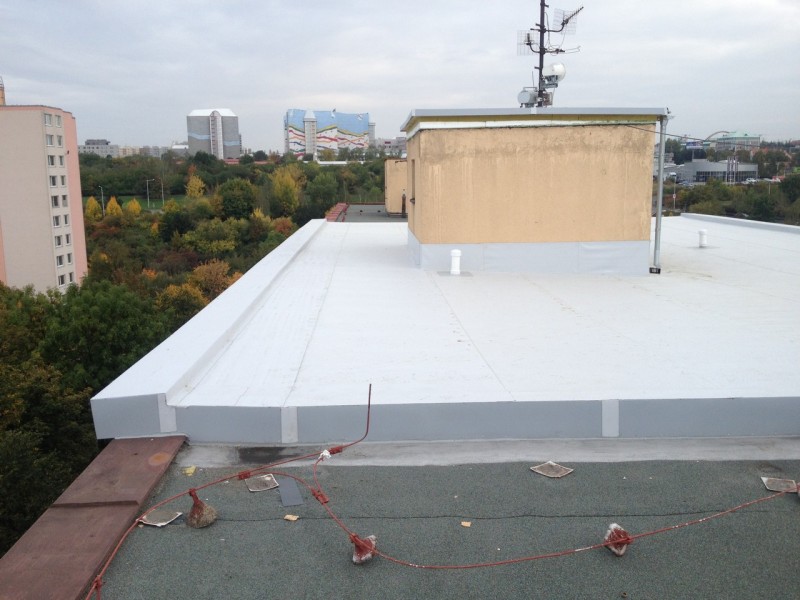 Rekonstrukce ploché střechy BD v ulici Senohrabská v Praze.
