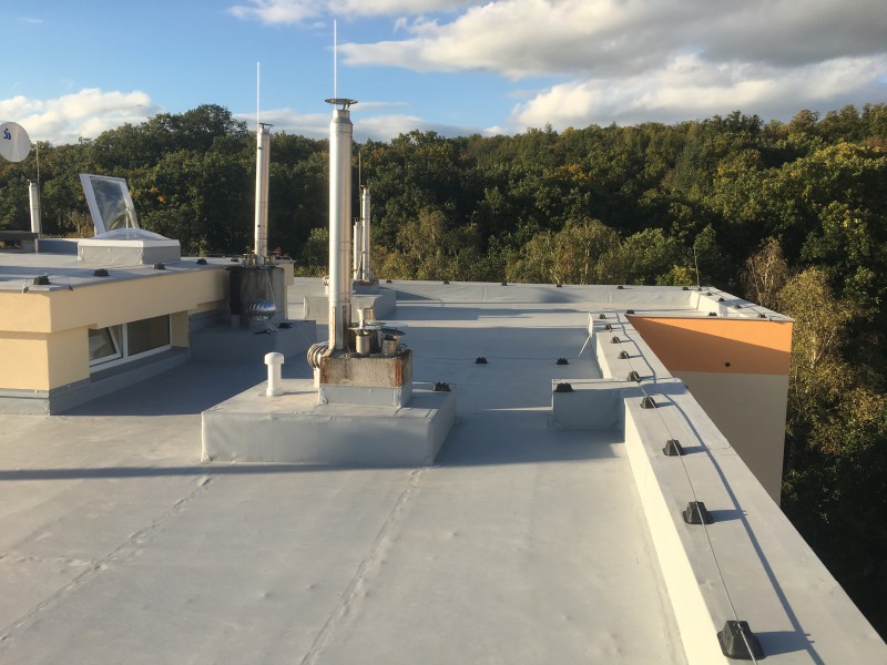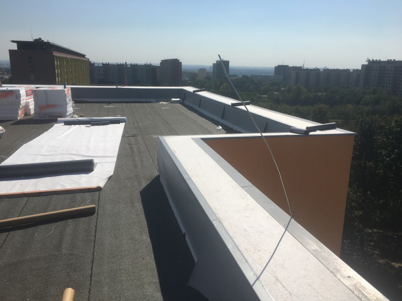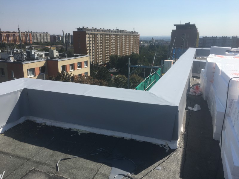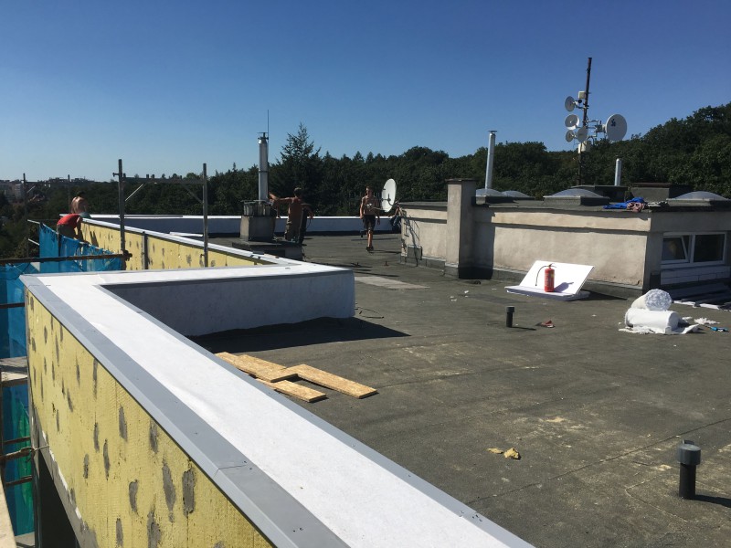 Rekonstrukce ploché střechy panelového bytového domu v ulici Jelínkova na Praze 8. Jde o kompletní rekonstrukci střechy včetně zateplení. Výměna VZT nástaveb, zateplení strojovny. Výměna světlíků a výlezu na střechu. Nová hydroizolační vrstva PVC včetně všech systémových prvků.