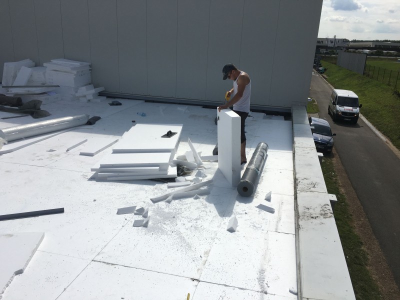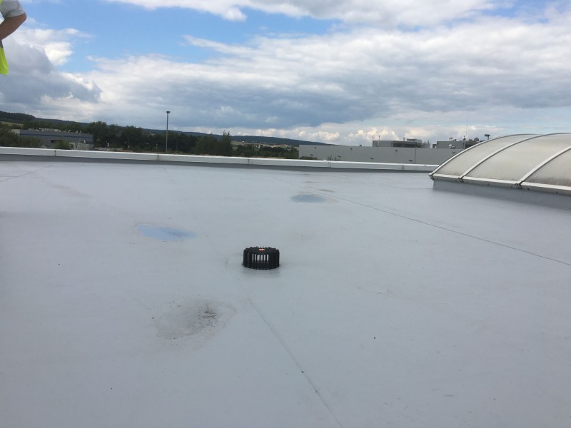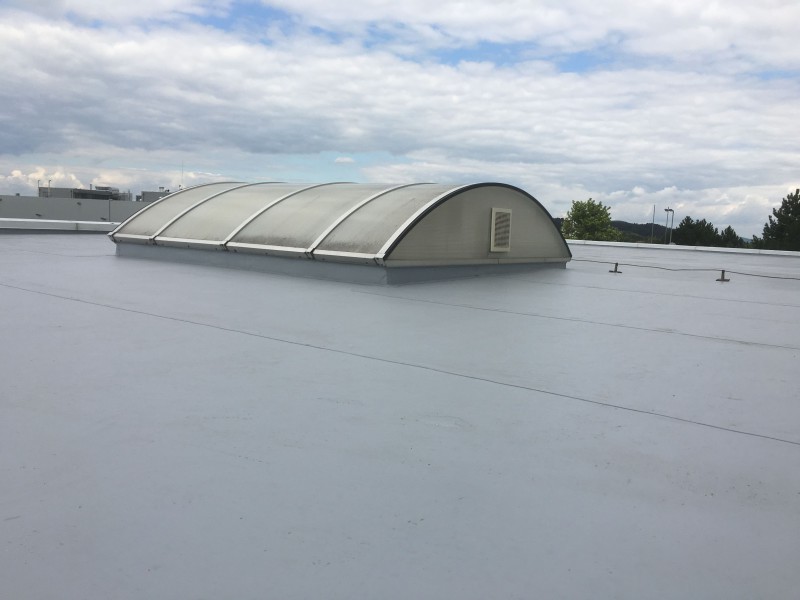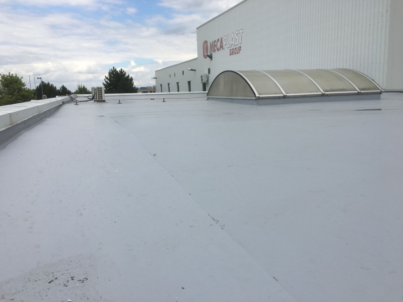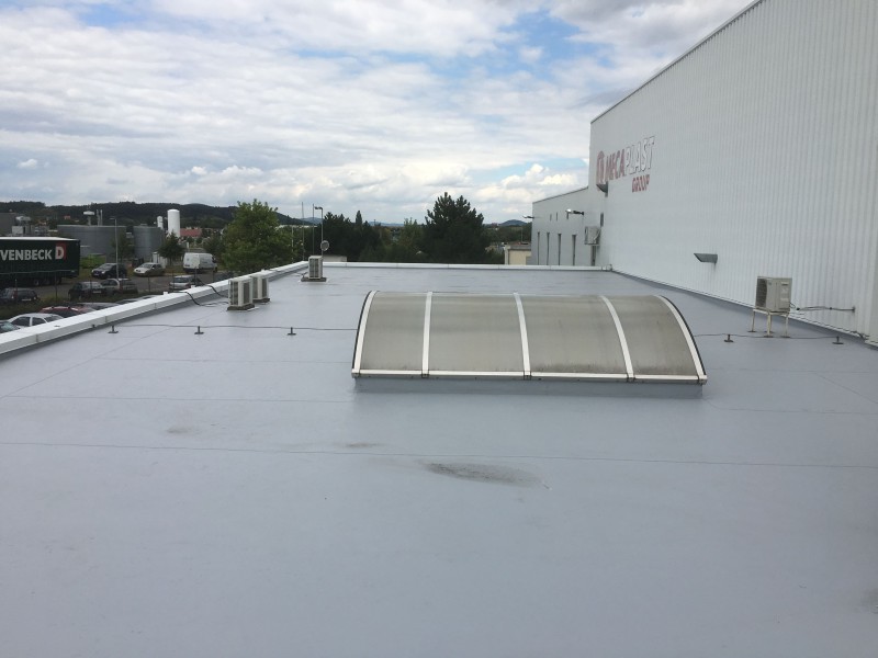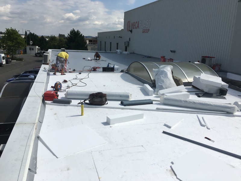 Rekonstrukce ploché střechy nad částí výrobní haly v obci Žebrák. V rámci rekonstrukce proběhla částečná výměna zateplení střechy, která byla poničena vlivem zatékání. Dále byla doplněna spádová vrstva pro zajištění plynulého odtékání střechy. Kompletní dodávka nové hydroizolační vrstvy z PVC fólie včetně systémových prvků.